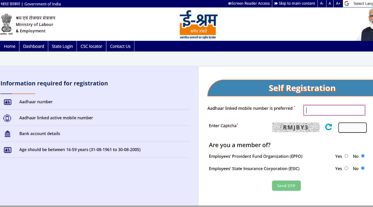 क्या है रजिस्ट्रेशन का तरीका?: ई-श्रम पोर्ट पर खुद का पंजीकरण करना बेहद सरल है। यह बिल्कुल निःशुल्क है यानी इसके लिए कोई रकम नहीं देनी पड़ती है। आप कुछ स्टेप्स में इसे आसानी से कर सकते हैं, जो कि निम्नवत हैंः